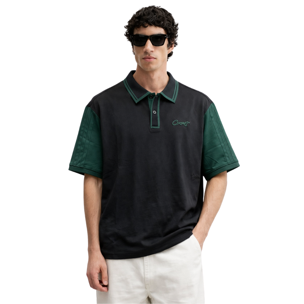 Black & Green Contrast Premium Polos (A-4115)