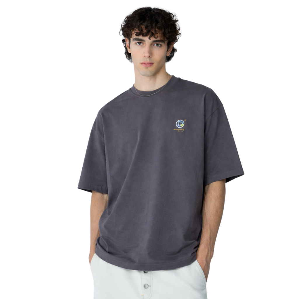 Grey Back & Front Printed Down shoulder T-Shirt (A-4160)