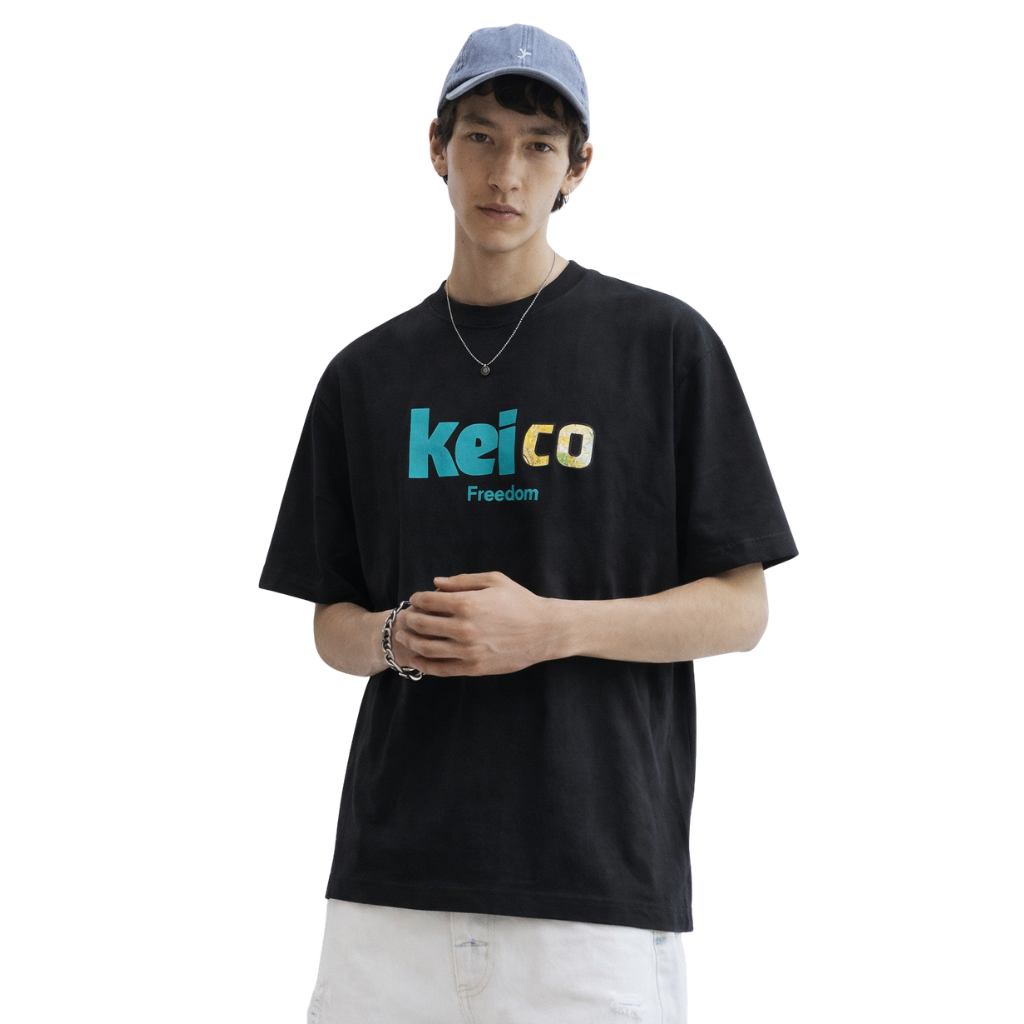 Black Back & Front Printed Down Shoulder T-Shirt (A-4159)