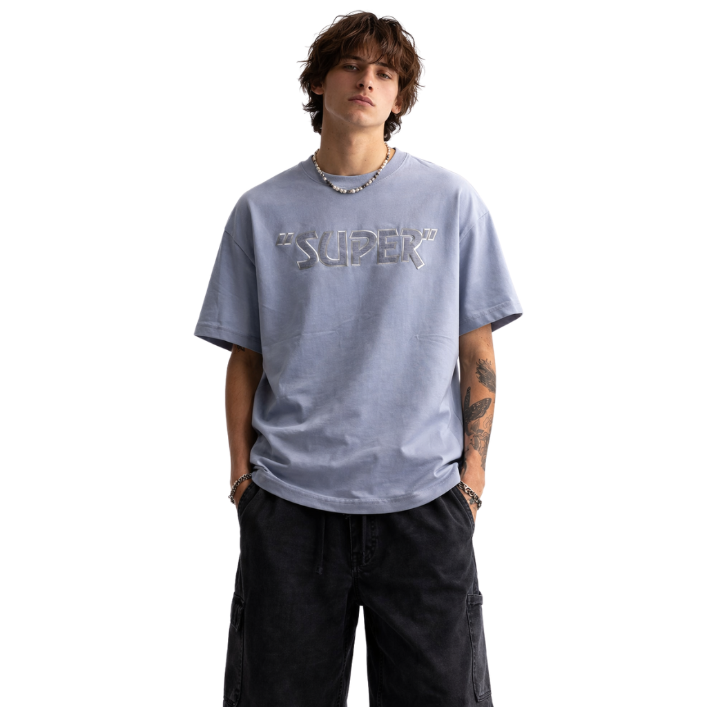 Light Sky Blue Down Shoulder Printed T-Shirt (A-4162)