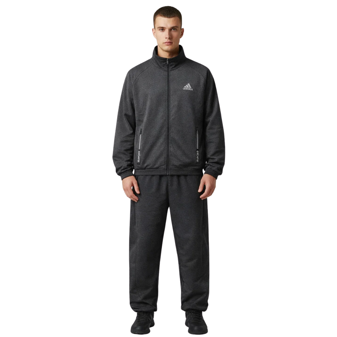Grey Mens Dry Fit Stripes Full Zipper Track Suit (A-3910)