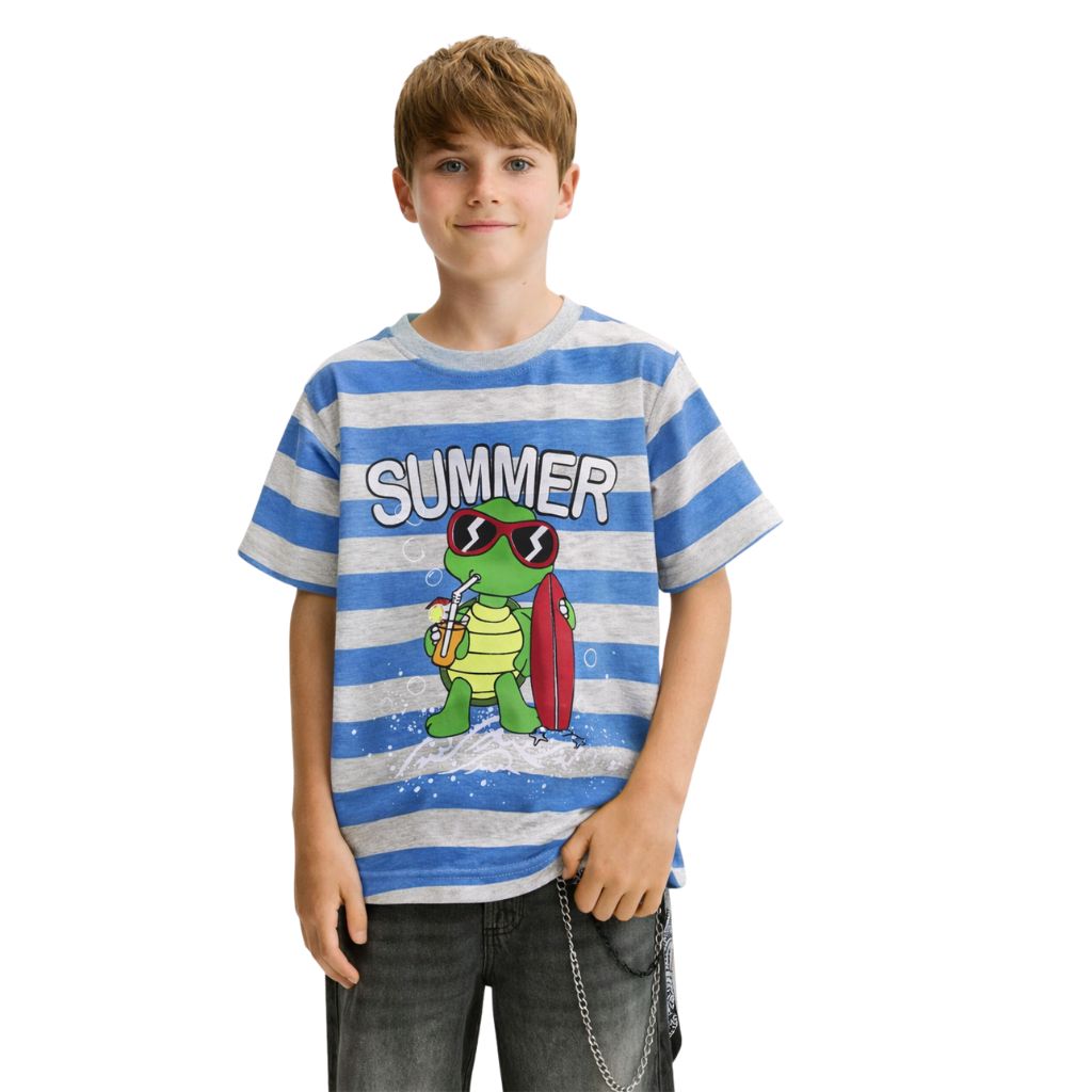 Blue and Grey Turtle Print Tee (A-1596)