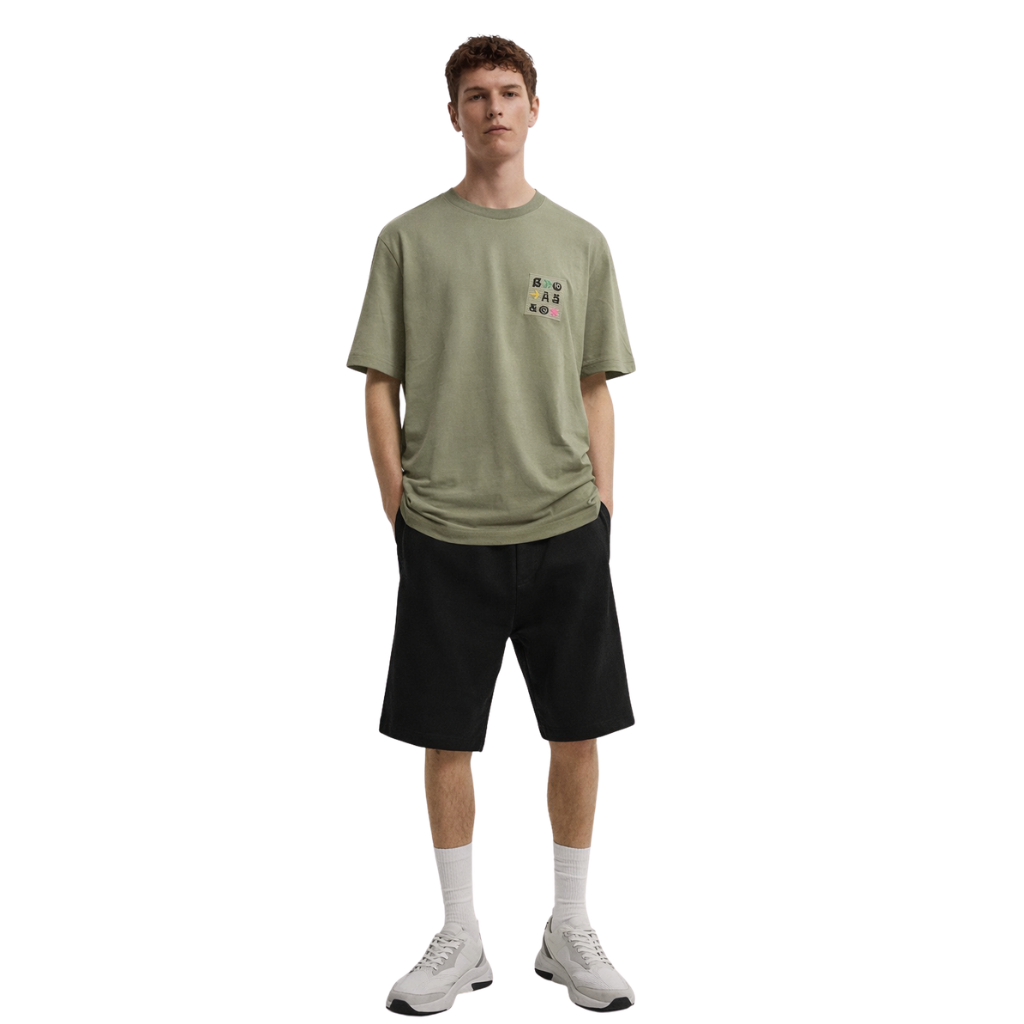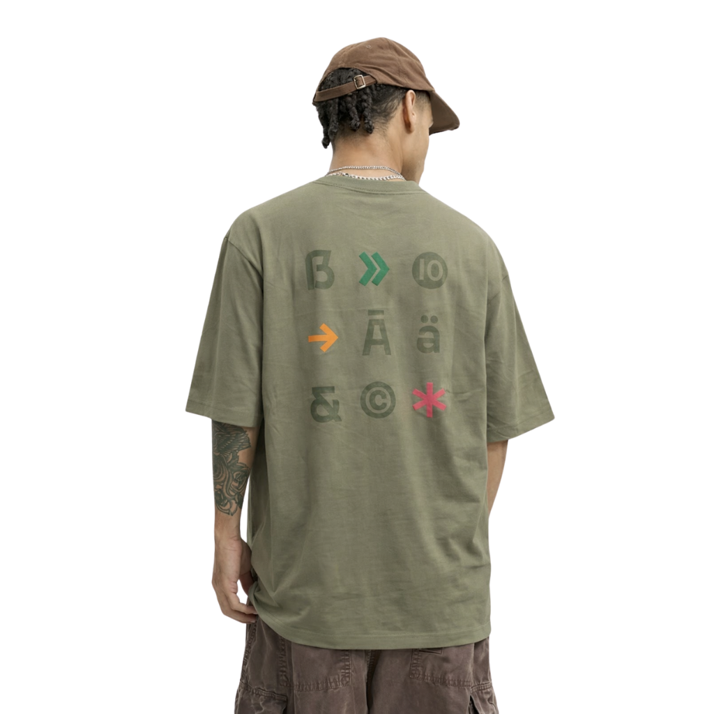 Bottle Green Down Shoulder Printed T-Shirt (A-4163)
