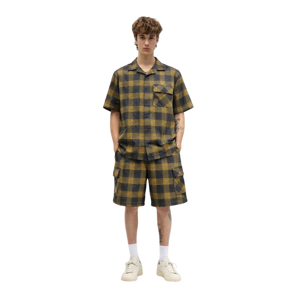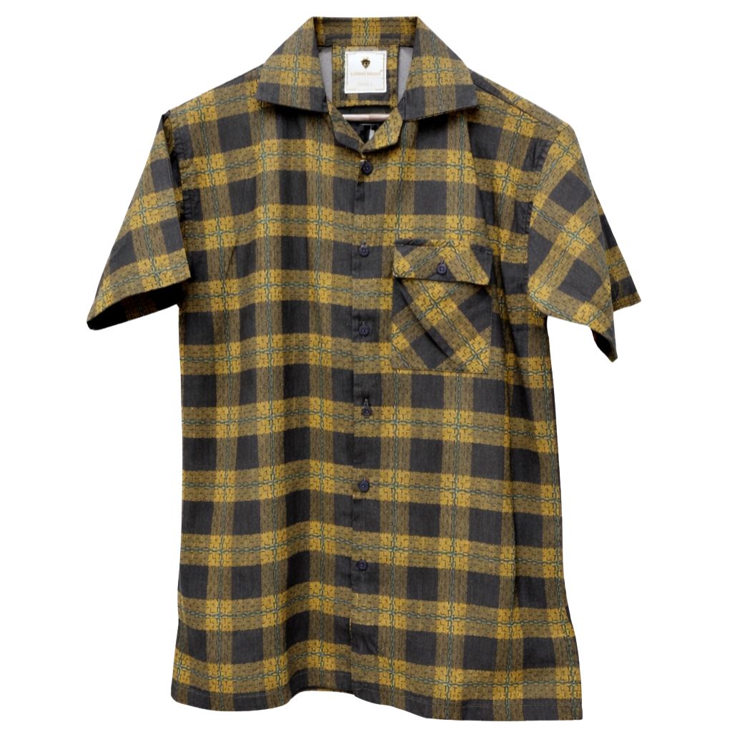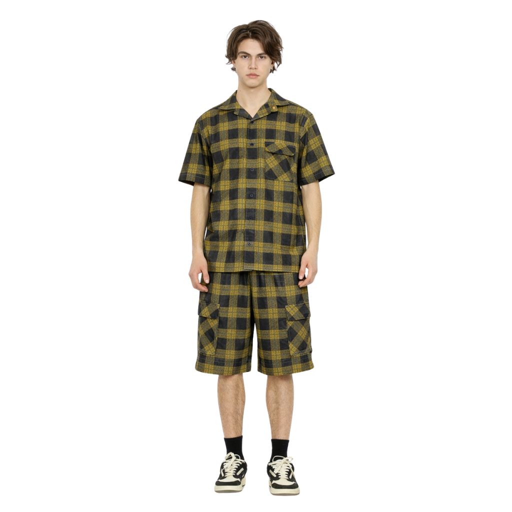 Mustard Yellow Cotton Dobby Rustic Check Mens Co-Ords Set (A-2928, A-2927)