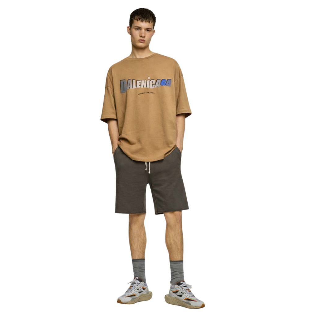 Dark Skin Color Down Shoulder Printed T-Shirt (A-4164)