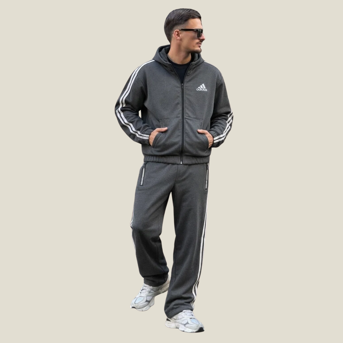 Grey Mens Dry Fit Stripes Full Zipper Track Suit (A-3910)