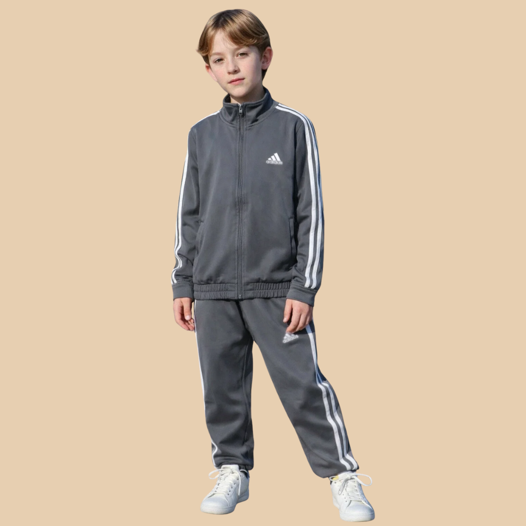 Silver Grey Boys Double Stripes Dry Fit Track Suit (A-3911)