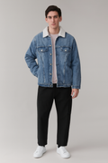 Sky Blue Denim Jacket with White Fur (A-2743)